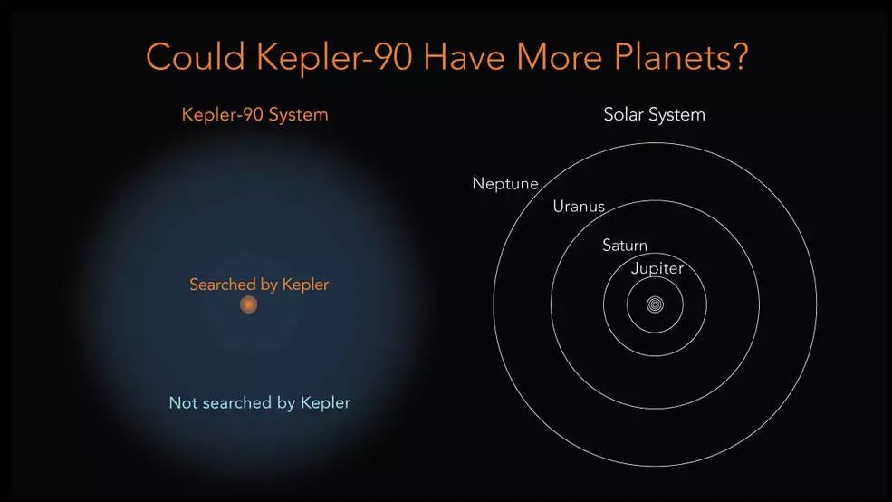 为了缩小搜索范围,科学家们研究了已知的可包含两颗及更多的系外行星的 670 颗恒星。最终发现了两颗新的行星:开普勒 80g 和开普勒 90i。重要的是,开普勒 90i 是开普勒 90 星系中的第八颗行星,这使得我们确定了开普勒 90 是我们已知的太阳系以外的第一个 8 行星星系。
