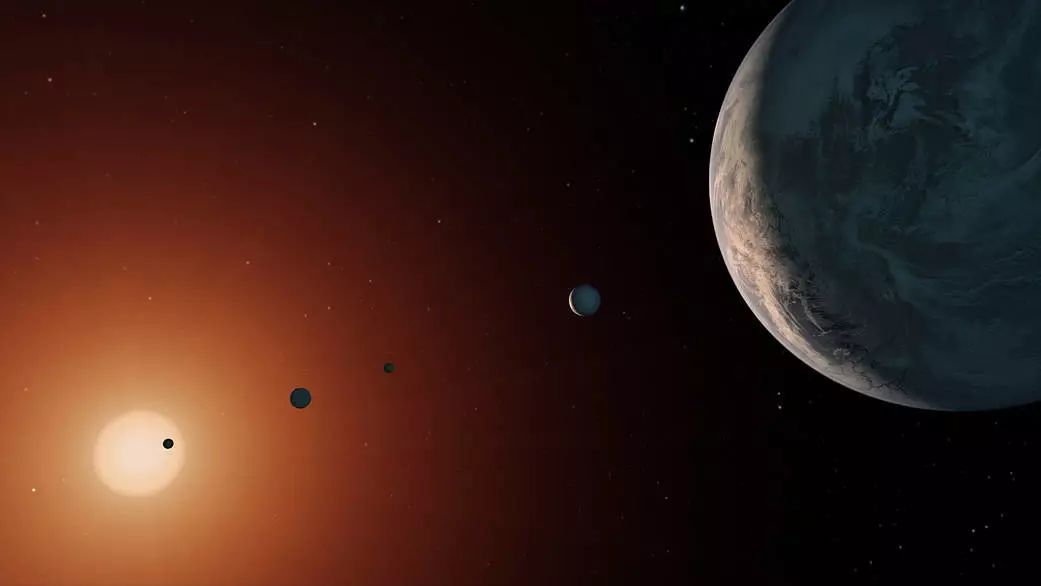 2017 年 2 月 22 日下午,NASA 宣布发现一个很特别的“太阳系”,这个行星系统中的恒星周围有 7 颗地球尺寸大小的行星,很可能都是固态行星,表面可能有水;其中 3 颗行星可能处在宜居带范围内,表明其上面的温度刚刚好,可能存在液态水。这一发现刷新了太阳系外恒星在宜居带范围内类地行星数量的记录。