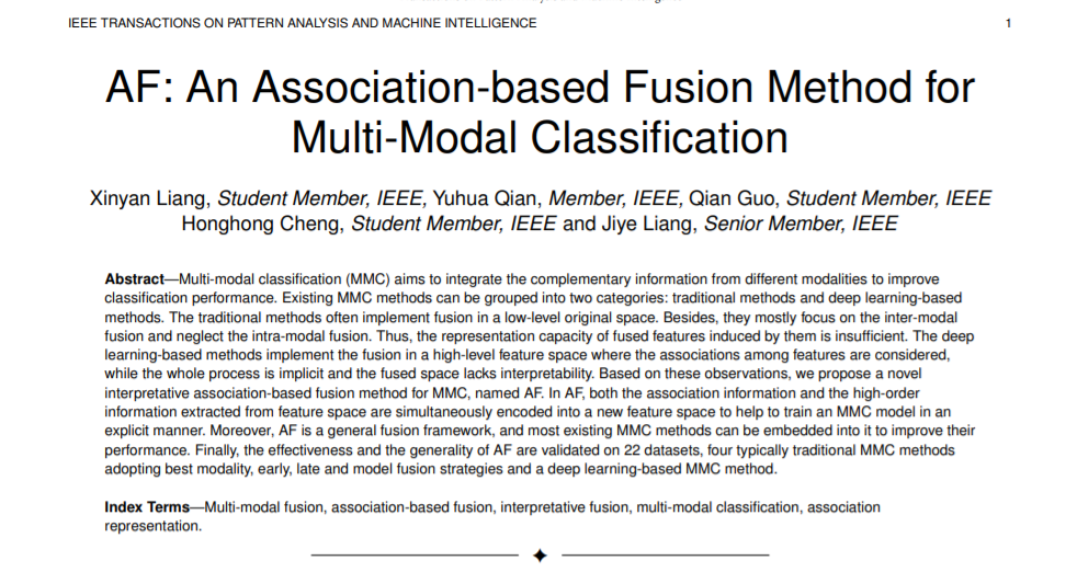 后台回复“AFMC” 就可以获取《【TPAMI2022】关联关系驱动的多模态分类》专知下载链接