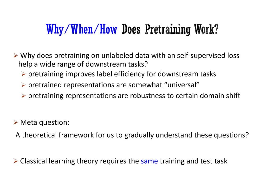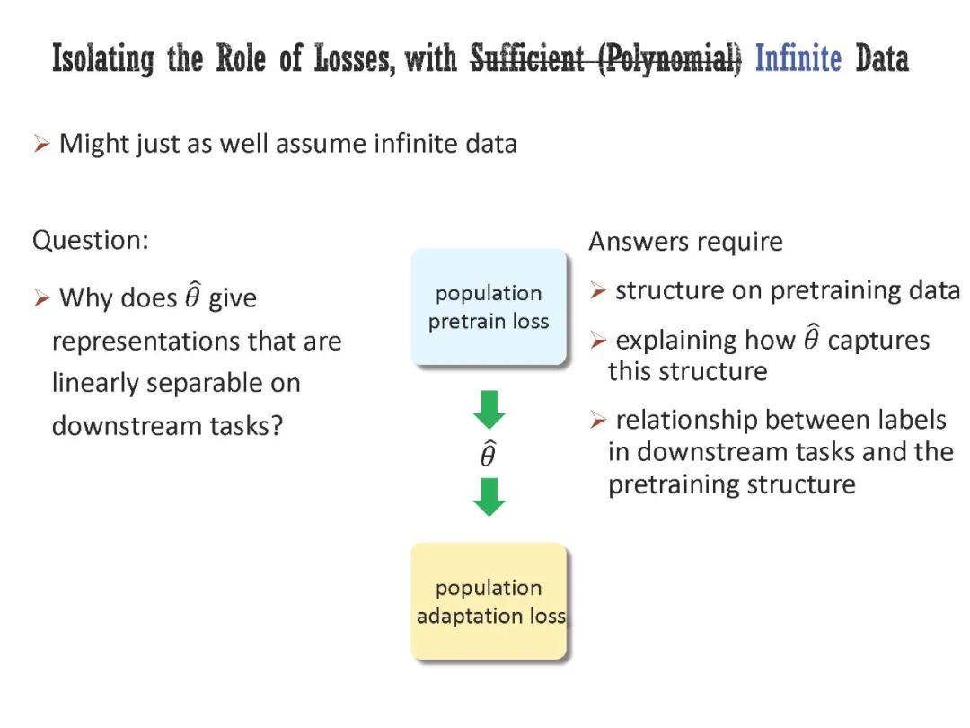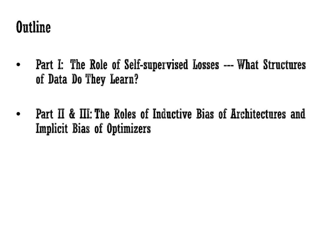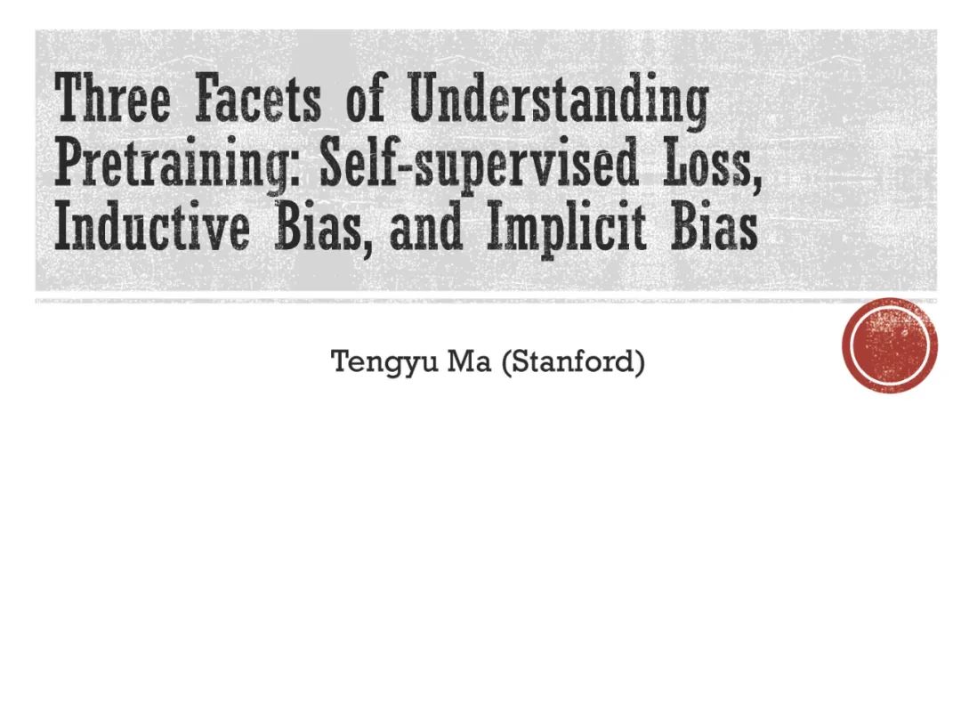 工智能正在经历范式转变,一些经过自监督预训练、然后适应广泛下游任务的模型正在兴起。然而,它们的工作原理在很大程度上仍然是个谜;经典的学习理论无法解释为什么对无监督任务的预训练可以帮助许多不同的下游任务。本次演讲将首先研究预训练损失在从未标记数据中提取有意义的结构信息方面的作用,特别是在无限数据状态下。具体来说,我将展示对比损失可能产生的嵌入,其欧氏距离捕获了原始数据之间的流形距离(或者更一般地说,所谓的正对图的图距离)。此外,嵌入空间中的方向对应于正对图中簇之间的关系。然后,我将讨论对实际预训练模型的行为进行清晰解释所必需的另外两个元素:体系结构的归纳偏差和优化器的隐式偏差。我将介绍两个最近正在进行的项目,其中我们(1)通过纳入体系结构的归纳偏差来加强之前的理论框架,(2)从经验和理论上证明优化器在预训练中的隐式偏差,即使使用无限的预训练数据。