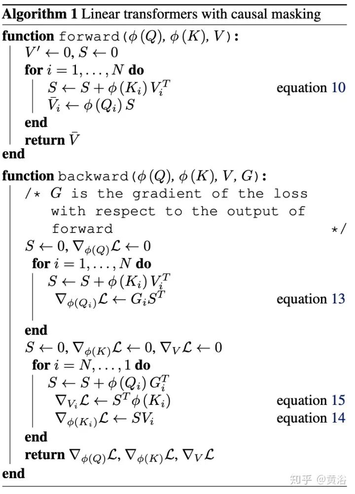 13、 Linear Transformer:“Transformers are rnns: Fast autoregressive transformers with linear attention“ 如图是其算法伪代码