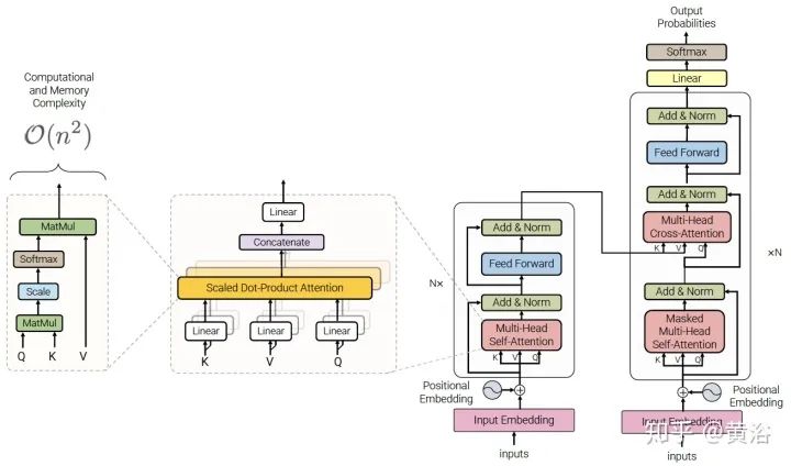 在编码器-解码器模式下,通常有多个multi-head self-attention模块,包括编码器和解码器中的标准self-attention,以及允许解码器利用来自解码器的信息的编码器-解码器cross-attention。这影响了self-attention机制的设计。