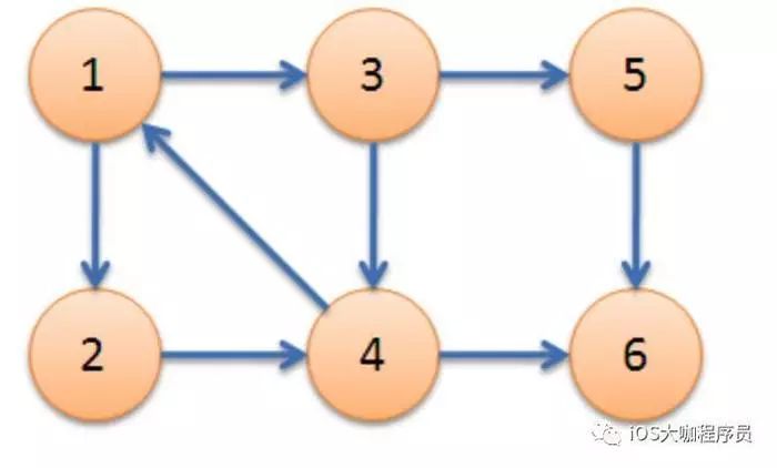 下图中,子图{1,2,3,4}为一个强连通分量,因为顶点1,2,3,4两两可达,{5},{6}也分别是两个强连通分量。