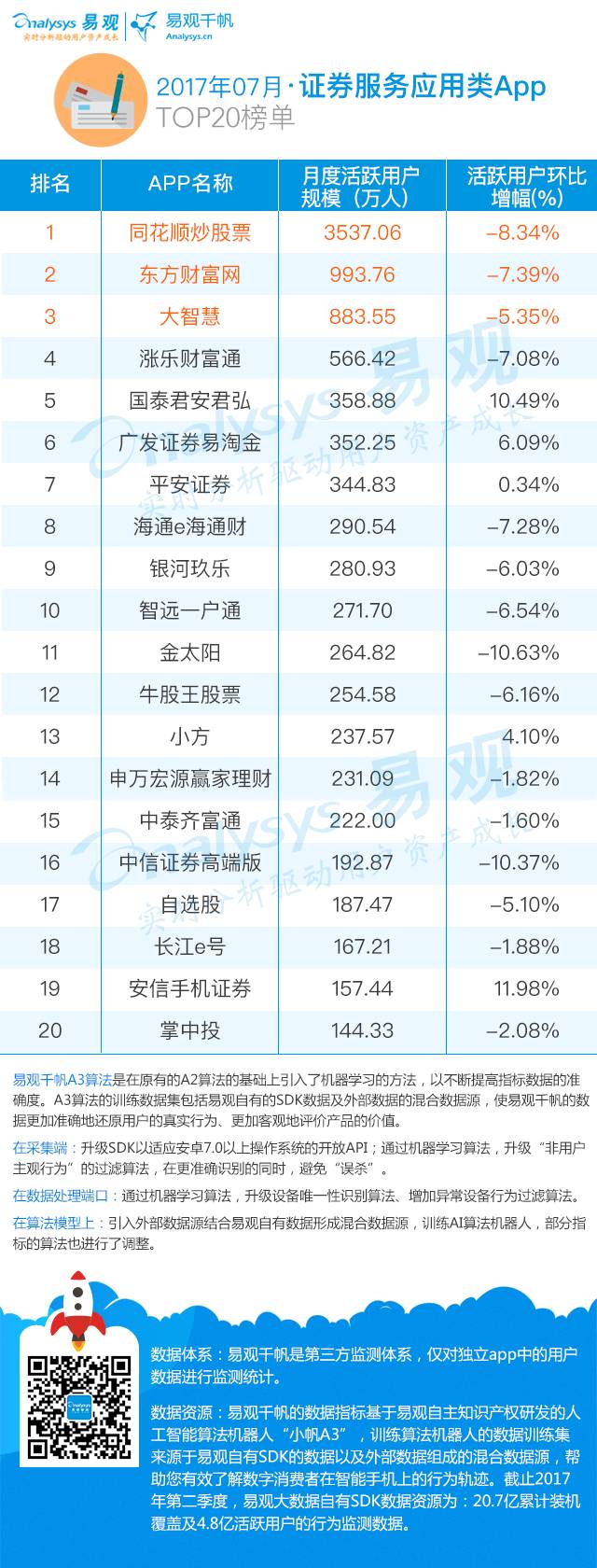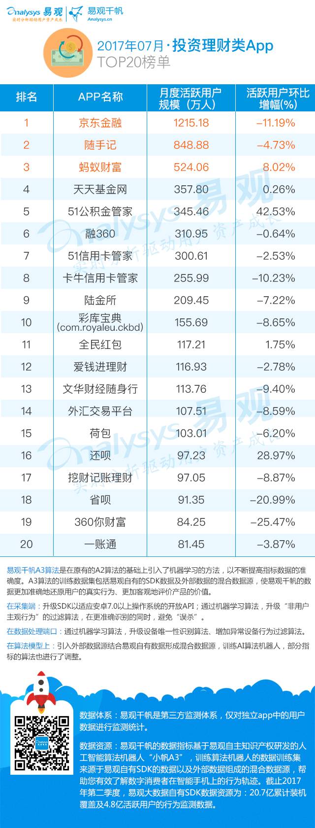 市场流动性压力逐步缓解,金融市场产品整体收益有所下滑,各领域活跃用户规模产生联动,2017年7月活跃用户规模有一定程度降低,预计阶段性调整并不影响未来增长走势。