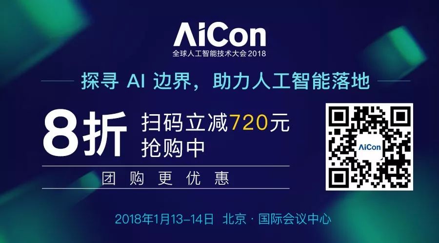 2018 年 1 月 11-14 日,AICon 全球人工智能技术大会上,一些大牛将首次分享 AI 在金融、电商、教育、外卖、搜索推荐、人脸识别、自动驾驶、语音交互等领域的最新落地案例,应该能学到不少东西。目前大会 8 折报名倒计时,更多精彩可点击阅读原文详细了解。