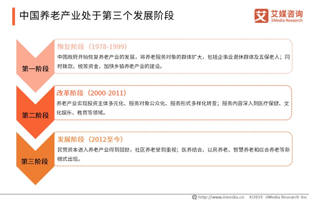 中国国家统计局数据显示,2018年中国60岁及以上的老人达2.5亿人,占总人口的17.9%。世界卫生组织预测,到2050年,中国或有35%的人口超过60岁,成为世界上老龄化最严重的国家之一。iiMedia Research(艾媒咨询)分析师认为,中国的老龄化问题日趋加剧,成为促使养老产业迅速发展的动力。