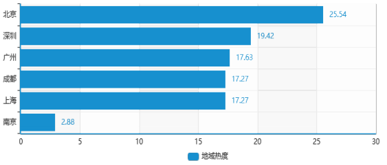 上图主要呈现了共享单车在一线城市的地域热度,说明单车的推广的力度还不够大,二、三线城市是各大品牌共享单车进军的布局,现在,ofo已经入驻了33个城市,摩拜单车入驻了18 个城市,即使这样,不到最后并不能判定谁是这一领域的老大,预示着各大品牌之间仍会竞相角逐,进行一场大规模的市场变革。