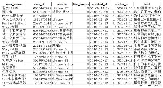 采用python爬虫抓取新闻页面和微博评论,从舆情的角度去了解共享单车,本次爬取的新闻数据,共计1500多条,如下图所示