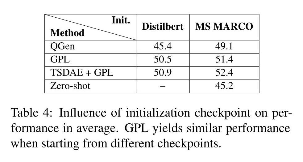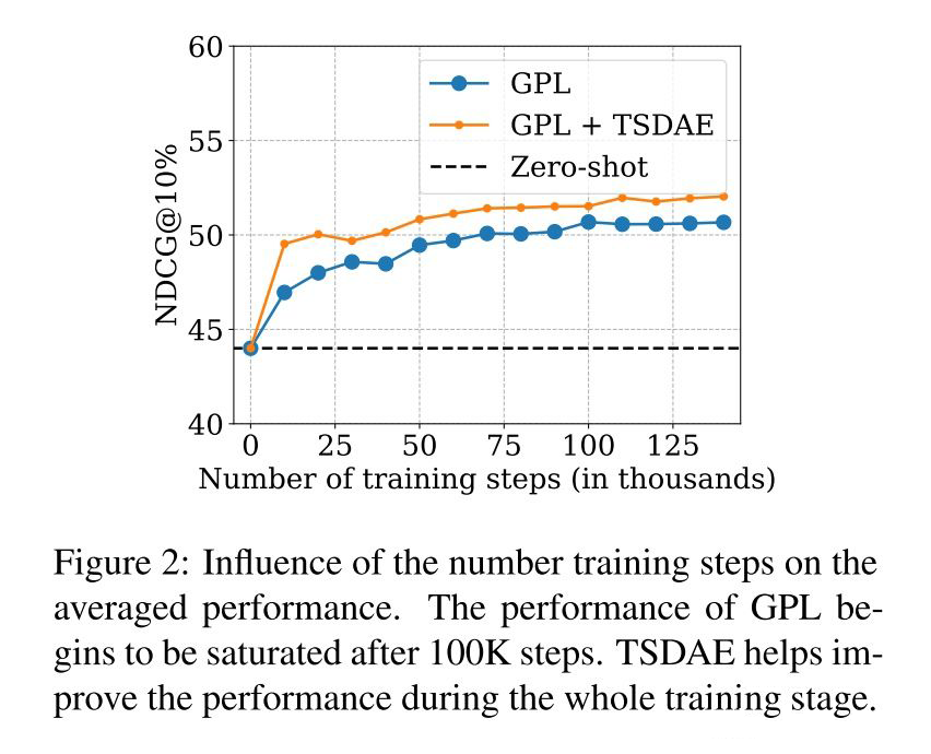 此部分分析了训练步数、语料库数量、query 生成、开始 checkpoint 对 GPL 模型的影响。