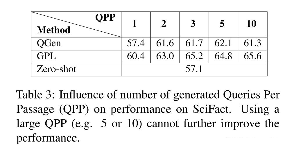 MarginMSE 损失解决了两个关键问题:当 query 生成器生成的 query 质量较低时,其 cross-encoder 分数也会比较低,此时稠密检索模型不会使 query 和 passage 在向量空间中过于接近。假负例会在cross-encoder中得到高分,相应的向量也不会被拉得很远。