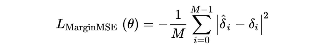 本文使用 cross-encoder 提供的伪标签和 MarginMSE 损失来训练模型,使稠密检索模型模仿 query 与正负 passage 之间的得分差异。