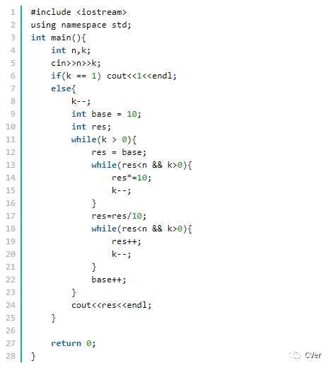 Q:我们输入两个值n和k,n表示我们有从1到n个整数,然后将这些整数都字符串化之后按字典排序,找出其中第K大的。例如:n=15,k=5.那么1-15字符串化之后排序如下:1,10,11,12,13,14,15,2,3,4,5,6,7,8,9。其中第5大的就为13。