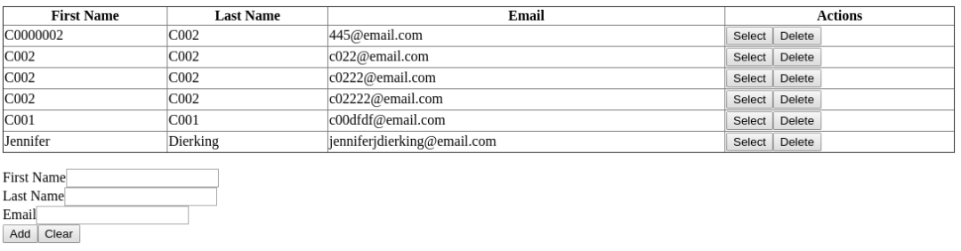 我们这样就创建了 Form,每个 Form 包含三个输入,它们绑定到组件中声明的 firstName、lastName 和 email 变量。我们还添加了三个按钮,用于创建新联系人、更新选定的联系人和清除该 Form。