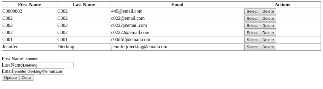 使用 Select 按钮选择联系人后,将载入 Form 内容,这时会出现 Update 按钮,而不是 Add 按钮: