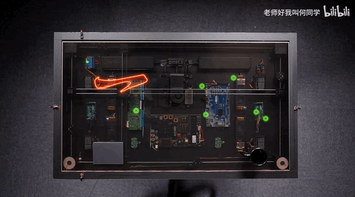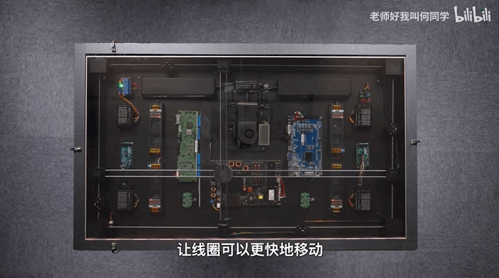 于是,何同学采用「追踪式无线充电」的方案,让一个线圈跑遍整个桌子,寻找需要充电的设备。