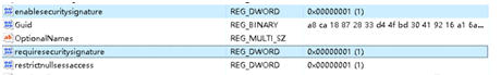 add"HKEY_LOCAL_MACHINE\System\CurrentControlSet\Services\LanmanWorkStation\Parameters"/v "RequireSecuritySignature" /t REG_DWORD /d 1 /f