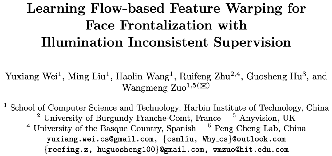 论文:《Learning Flow-based Feature Warping for Face Frontalization with Illumination Inconsistent Supervision》。