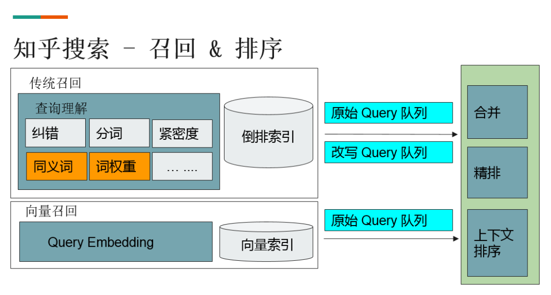 最终参与排序的就是这三个队列,并进行合并和精排,在精排之后会进行上下文排序。下面来介绍下各个模块具体的实现方法。