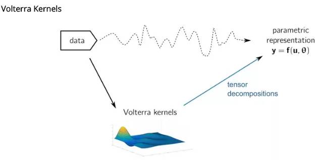理解Volterra序列如何工作的最简单的方法是,它是一系列数字滤波器,用于预估从输入信号到适当的输出的转换。卷积核(滤波器)的形状,时间延迟和数量组成了必须估计的模型的特征,以便对复杂系统的行为进行准确的预测。