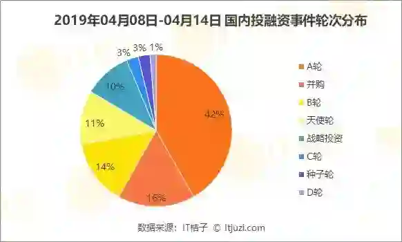 从轮次分布来看,早期投融资事件数量与往常一样占比较大。其中,A 轮投融资事件数量最多,发生 33 起,占比 42%;其次,本周并购事件数量占比较往常增长突出,位列第二,发生 13 起,占比 16%;B 轮投资事件数量位列第三,发生 11 起,占比 14%。