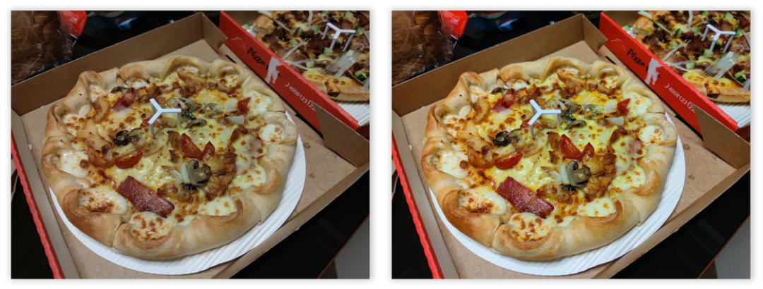 因为 1.0 的场景识别还是存在的,所以 2.0 的调色不会过于艳丽,而是「一切都刚刚好」,适合一般场景;而对于拍食物这种「饱和度拉满」的场景,1.0 的存在就很有必要了。