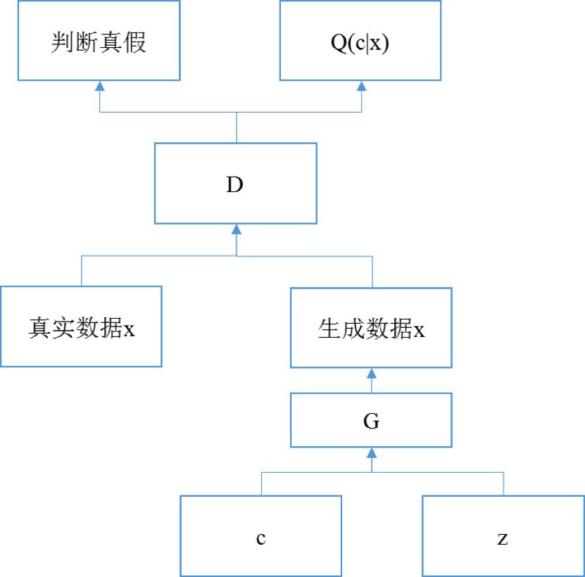 CGAN(Conditional Generative Adversarial Nets),针对 GAN 本身不可控的缺点,加入监督信息,训练从无监督变成有监督,指导 GAN 网络进行生成。例如输入分类的标签,可生成相应标签的图像。这样 CGAN 的目标方程可以转换为:
