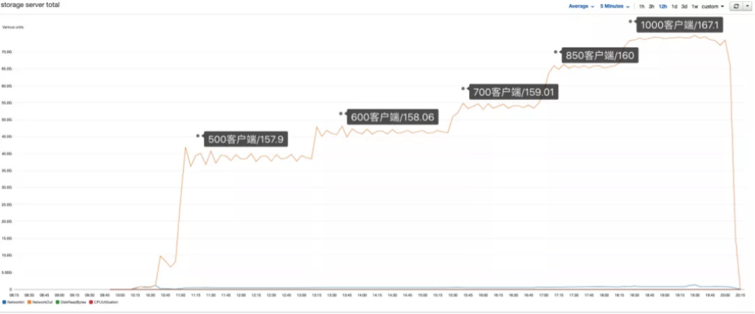 为了测试大规模 Windows 客户端并发访问的场景,焱融科技与 AWS 针对实际渲染应用进行了联合测试。在 8 台 EC2 服务器组成的 YRCloudFile 集群中,焱融科技分别使用 500、600、700、850、1000 台 Windows 客户端,运行 Maya 渲染程序,对原始素材进行了渲染测试。在渲染测试过程中,网络输出的总流量随着客户端数量的增加平稳上升并持续保持稳定,客户端加载渲染素材的平均时间控制在 160 秒左右,满足了企业大规模渲染场景下并发访问对共享文件系统的性能需求。