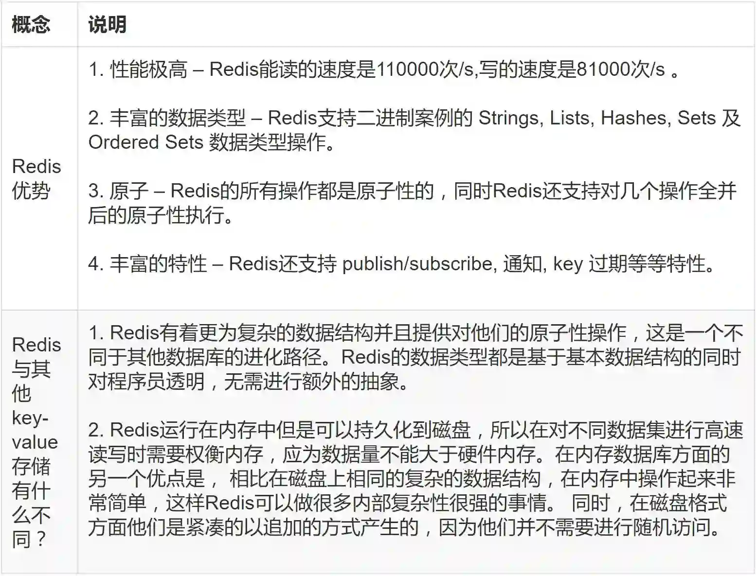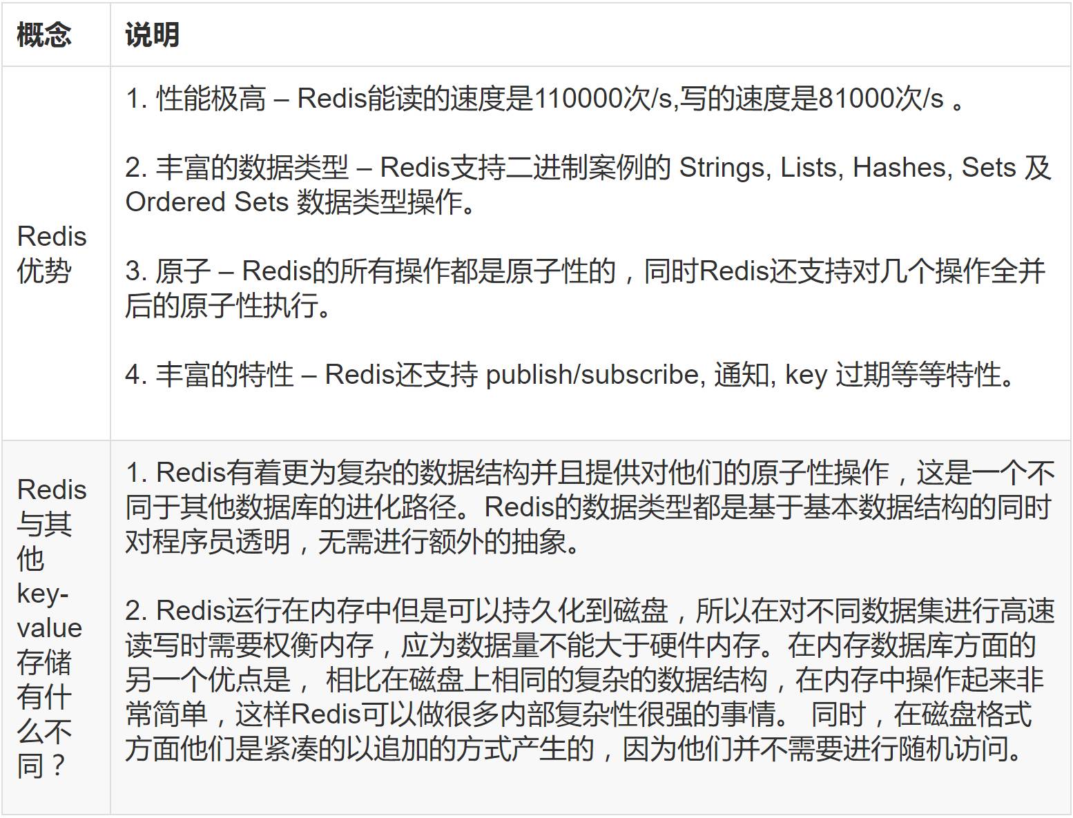 Redis 与其他 key – value 缓存产品有以下三个特点: