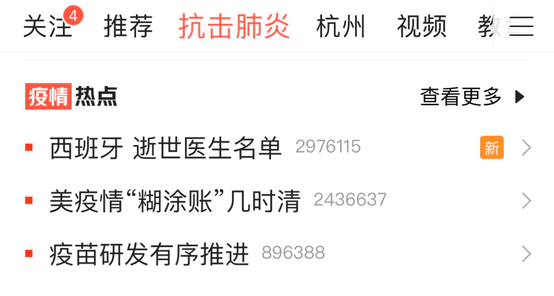 甚至在国外疫情发展迅猛的时候,推出海外确认名人板块,从某种程度上满足了国内用户的看热闹心理。