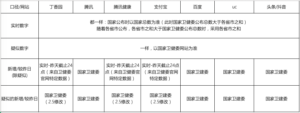 数据爬取的算法能力刚开始会发挥一定的作用,后续随着疫情发展,数据来源主要只有那么几家——国内主要是国家、各省市卫健委官网,国外后续主要集中WHO和霍普金斯大学网站,数据爬取上带来的差异点便逐渐收拢。