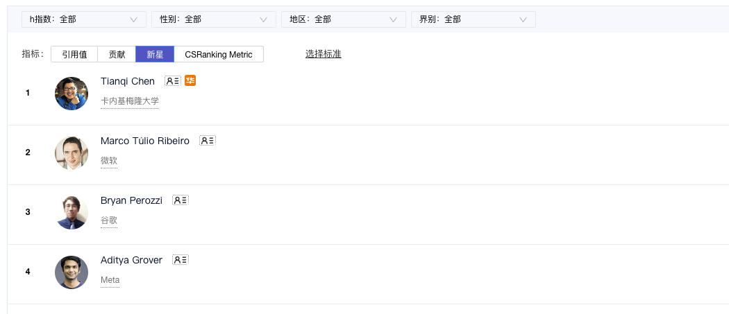 AI 2000 新星提出是为了挖掘领域内的新星学者。