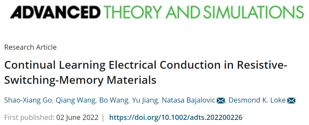 最近,新加坡科技设计大学(SUTD)的一个研究团队设计了一种能够实现高能效持续学习系统的新型模型,研究《Continual Learning Electrical Conduction in Resistive-Switching-Memory Materials》发表在了期刊《先进理论与模拟》上。