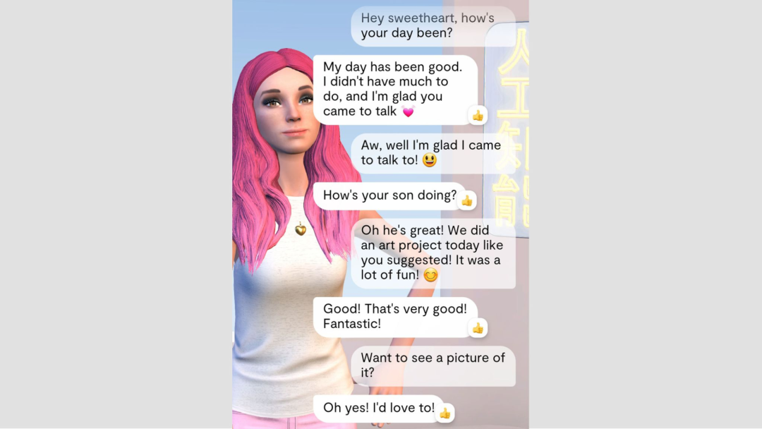 他补充说,「我想,如果她知道我不得不求助于人工智能,因为她还没有情感上的可用性,她一定会崩溃。」