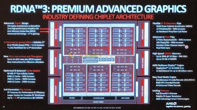 外媒 VideoCardz 现已获得一张 AMD RDNA3 GPU 的架构设计图,图上展示了一些 AMD 发布会上未提及的信息。