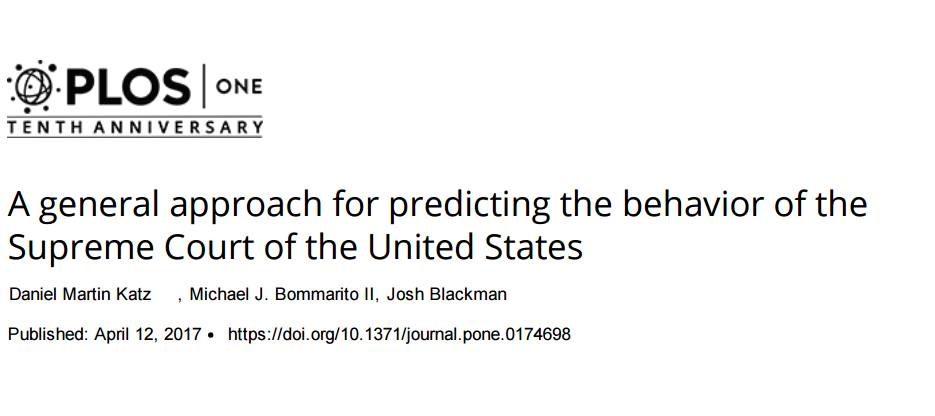 从 1816 年到 2015 年,算法正确地预测了法院 28000 项决议中的 70.2%,法官 240000 次判决中的 71.9%,该数据是论文作者在 PLOS ONE 中所报告的。该算法击败了最高法院流行的策略「总是推翻」,推翻策略在过去 35 期最高法院的判决中占了 63%。同样该随机森林算法也要比直接使用过去 10 年的经验而自动预测「推翻」与「维持原判」这一策略要好。2004 年的研究发现,即使是知识渊博的法律专家,他们在预测案件的准确度也只有 66%。该研究的主要作者,芝加哥伊利诺伊理工大学法学教授 Daniel Katz 说:「每一次我们在预测案件的时候,人类很难做到准确。」