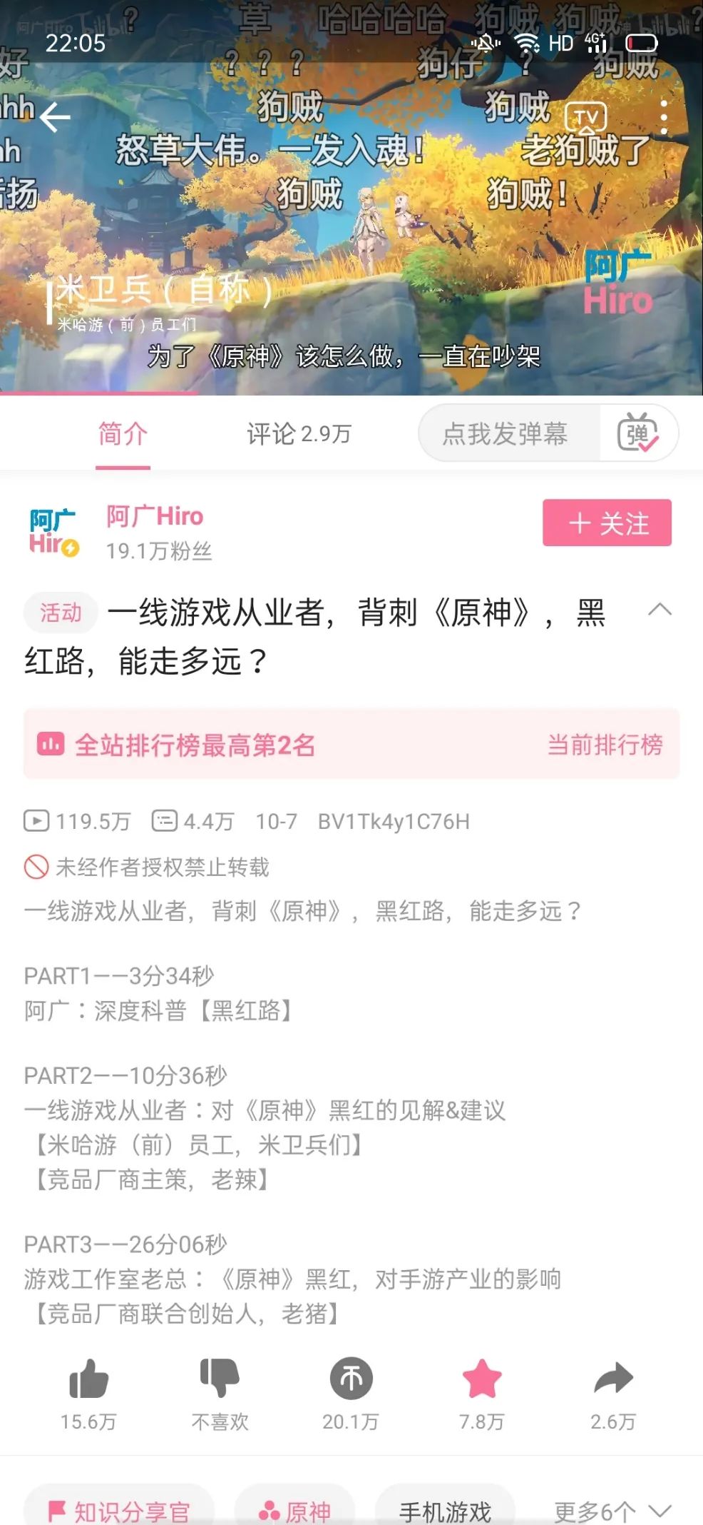 该视频发布4天后播放量达到118万,在B站全站排行榜上最高达到第2名,但也因为对重氪玩家的讽刺惹怒了一众手游重氪玩家和主播,B站有百万粉丝的手游up主卡特亚因为生气而要求与阿广连麦对线,认为其根本不懂重氪玩家的需求和理念。