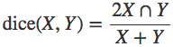 计算值是交叉区域与两区域之和的比率的两倍。对于不相交的区域,值为0;如果两区域完全一致,则值为1。