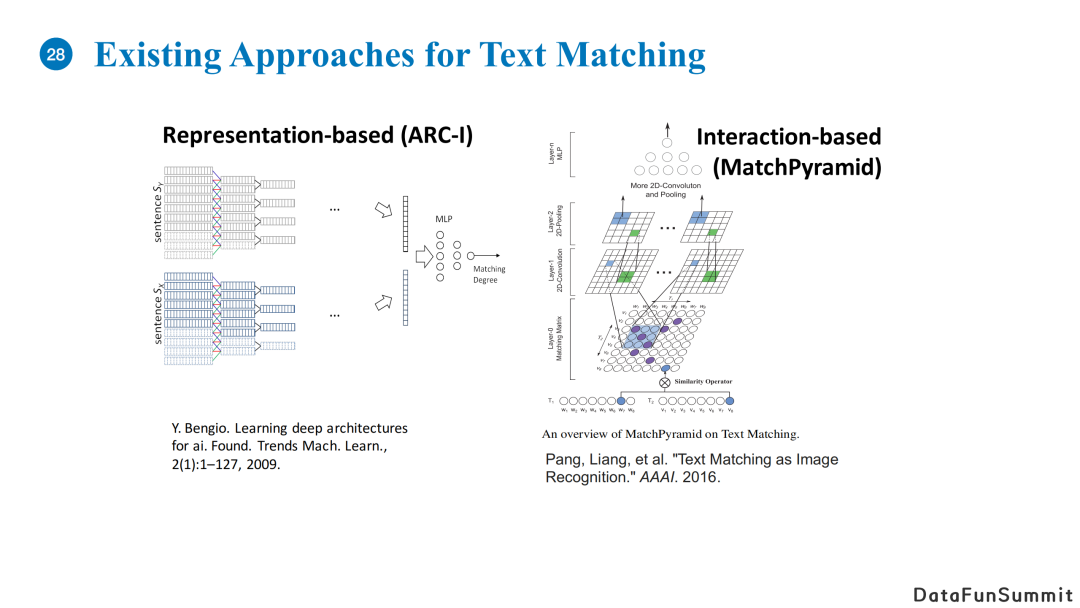 基于表示的模型,核心在于设计一个编码器,对于两个输入文本,我们使用编码器得到隐向量表示,进而计算它们之间的匹配度;