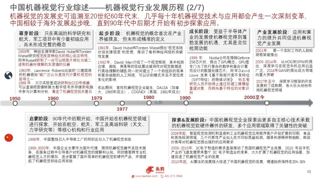 机器视觉人诞生于上世纪70年代末,并快速在全球范围流行和发展。近年来人口结构发生变化,制造业和建筑业用劳成本不断提高,大量的劳动密集型产业也在不断的转型与升级,现有制造模式不可持续或待突破,工业机器人由于具有更高的工作效率和极强的稳定性,可在较为复杂恶劣的情况下进行作业,在众多劳动密集型行业发挥重要的作用。