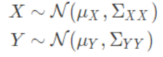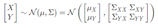 首先,我们得到测试点 X 和训练点 Y 之间的联合分布 P(X,Y),这是一个维数为∣Y∣+∣X∣的多元高斯分布。下图中可以看到,我们把训练点和测试点拼接到一起,计算对应的协方差矩阵。