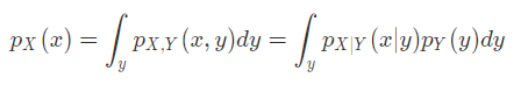 这个公式的意思是,如果我们只对 X=x 的概率感兴趣,我们要考虑 Y 所有可能的值,它们齐心协力才能得到最终的结果。