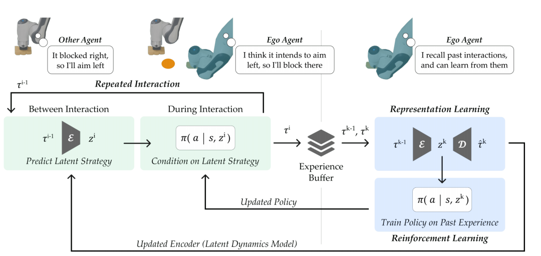 智能体与人类或机器人的无缝交互很困难,因为现实环境是动态变化的,并根据自智能体的行为更新策略,而自智能体必须预测这些变化以随机应变。
