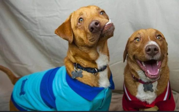 普通的(卷积)神经网络能够将这两只可爱的狗视为同类型的狗脸,因为它并不介关心组成狗脸的元素在空间中相对于彼此的位置。毕加索(左边的狗)将幸运的不会被模型分错,但我们真的想要有一个模型可以认识到,这不是一个常见的柯基犬 - 斗牛犬混合狗的例子。图片来源:爱犬救援