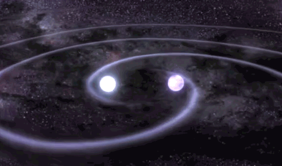 相比之下,两个巨大星体绕轨道运行这种运动模式其实并不是重复的,而是不断变化的。