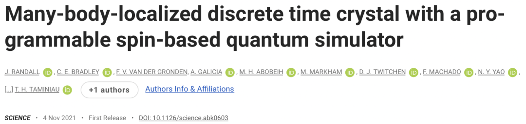 2021年11月30日,谷歌量子AI的研究人员利用Sycamore量子计算机创造出的时间晶体登上《Nature》。