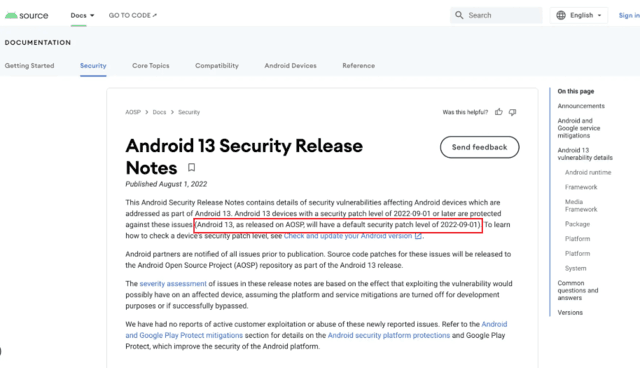 Google 于开发者博客中发布一篇 Android 13 安全性更新笔记,提及已修复测试版多达 107 个漏洞,并透露 9 月 1 日会有第一个开源版本(AOSP)更新档案,暗示开源版本 Android 13 在下月发布。事实上,Android 13 比往年更早发布 Beta 版本,且在七月已经结束最后一个测试版本,进度明显超前历代。去年10 月初,Google 推出开源版本 Android 12 后,Pixel 手机两周后就开放升级,外媒预期新版本 Android 13 有望提早在九月释出,但尚未获得官方证实。