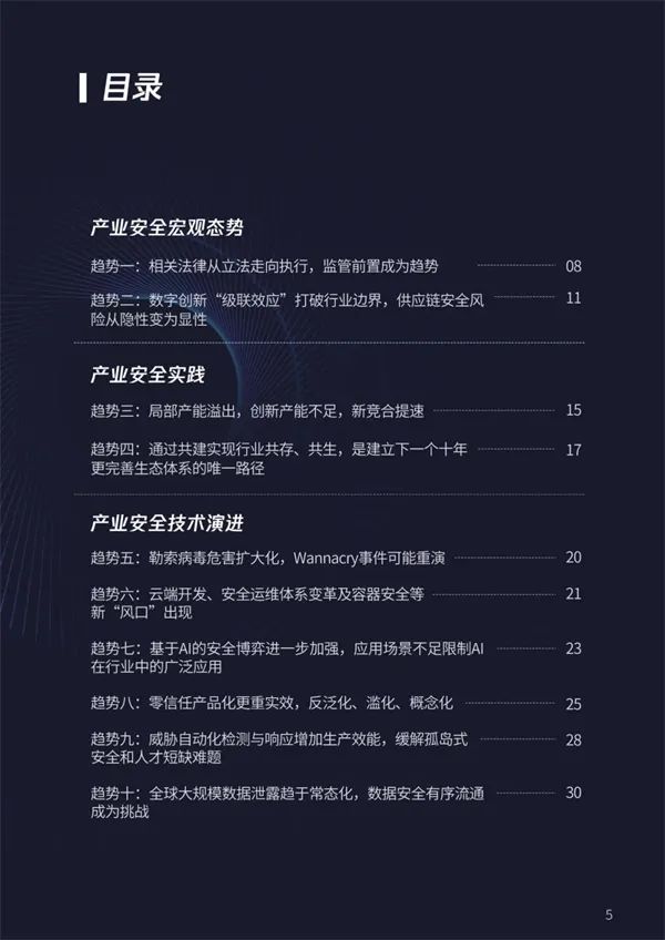 根据行业发展的过往经验研判,《趋势》认为,安全产业将继续保持高度竞争的态势,呈现出超过数字经济整体发展速度的趋势。企业与企业之间的竞争格局将会持续变化。当前的行业领导者,将会面对掌握技术核心竞争力的新兴企业的挑战。而大企业在人才、资本、客户积累上保有优势,市场格局将会发生剧烈变化。