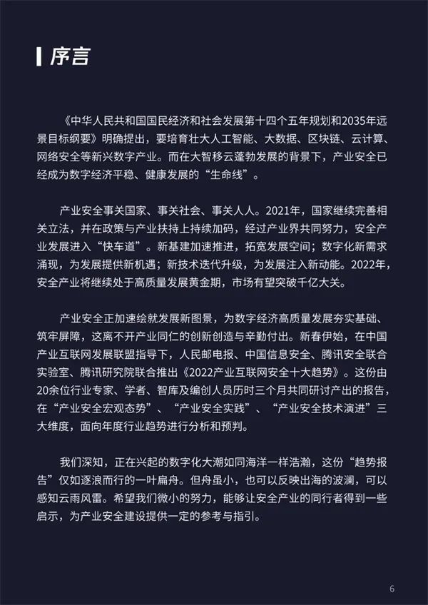 日前,在中国产业互联网发展联盟指导下,人民邮电报、中国信息安全、腾讯安全联合实验室、腾讯研究院联合推出《2022产业互联网安全十大趋势》(以下简称《趋势》)。报告围绕“产业安全宏观态势”“产业安全实践”“产业安全技术演进”三大维度,面向年度行业趋势进行分析和研判,为产业数字化发展提供参考和指引。