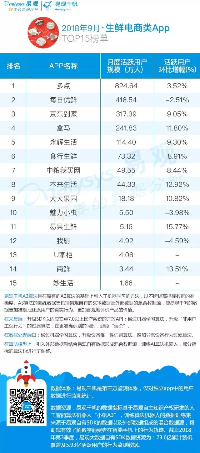 9月,丰收季节和大闸蟹更配哦!时令生鲜新款上市,生鲜电商一路高歌猛进。通过深耕社交模式及会员体系,其流量争夺大战再次升温,用户粘性进一步强化。其中,多点、盒马、食行生鲜等表现突出,增幅明显。