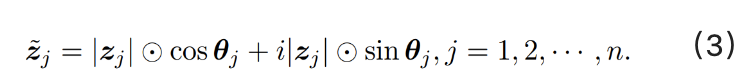 公式(1)中包含幅值和相位两项,幅值 z_j 类似于实值特征,可以采用标准的 Channel-FC 生成:
